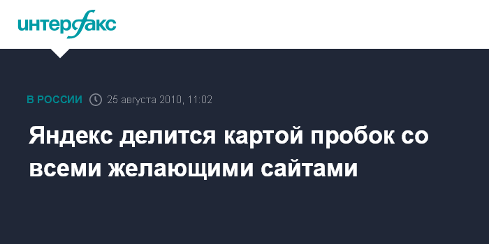 Москва. 25 августа. INTERFAX.RU - С сегодняшнего дня все, кто хотел бы показывать на своем сайте загруженность дорог, могут совершенно бесплатно встроить карту пробок Яндекса на свой ресурс. Это можно сделать с помощью API Яндекс.Карт, сообщает пресс-служба компании.