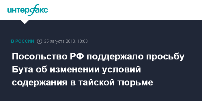 Посольство РФ поддержало просьбу Бута об изменении условий содержания в тайской тюрьме