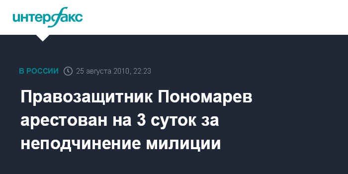 Правозащитник Пономарев арестован на 3 суток за неподчинение милиции