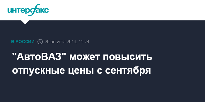 Москва. 26 августа. INTERFAX.RU - ОАО "АвтоВАЗ" может с сентября изменить отпускные цены на автомобили, сообщил журналистам президент компании Игорь Комаров.