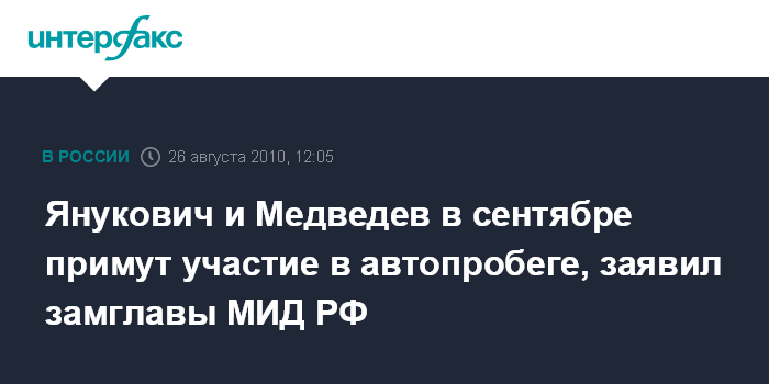 Янукович и Медведев в сентябре примут участие в автопробеге, заявил замглавы МИД РФ