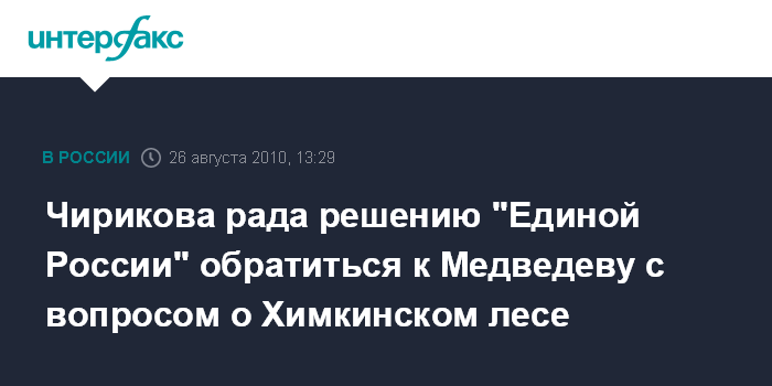 Чирикова рада решению "Единой России" обратиться к Медведеву с вопросом о Химкинском лесе