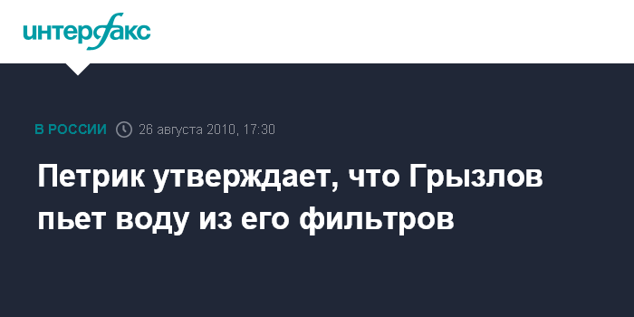 "Грызлов пьет воду только из моих фильтров. И многие другие тоже", - сказал Петрик на пресс-конференции в пресс-центре агентства "Интерфакс Северо-Запад" в четверг.