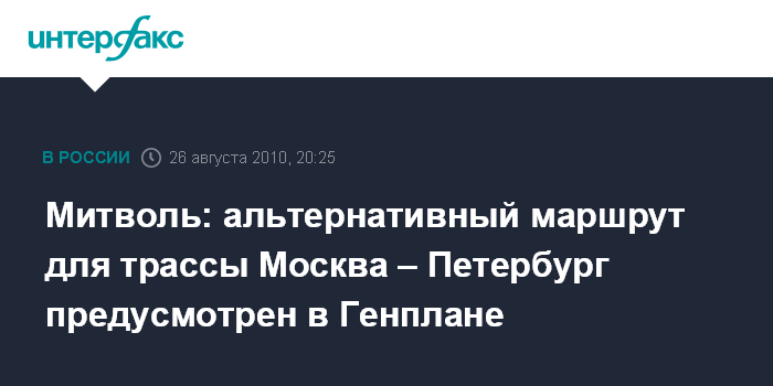 Митволь: альтернативный маршрут для трассы Москва – Петербург предусмотрен в Генплане