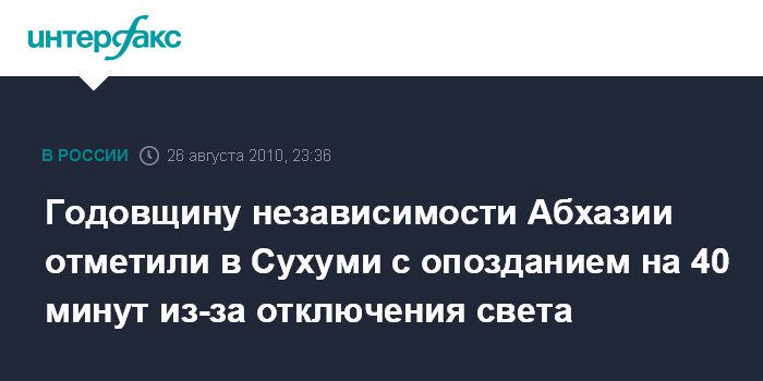 Годовщину независимости Абхазии отметили в Сухуми с опозданием на 40 минут из-за отключения света