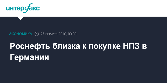 Москва. 27 августа. ИНТЕРФАКС-АНИ - Российская НК "Роснефть" (РТС: ROSN) близка к покупке 50-процентной доли в Ruhr Oel GmbH, которая владеет НПЗ в Германии, сообщает The Wall Street Journal со ссылкой на свои источники.