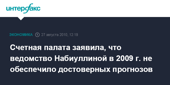 Счетная палата заявила, что ведомство Набиуллиной в 2009 г. не обеспечило достоверных прогнозов