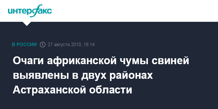 Ростов-на-Дону. 27 августа. INTERFAX.RU - В частных подворьях Камызякского и Кировского районов Астраханской области несколько свиней заболели африканской чумой (АЧС), сообщили агентству "Интерфакс" в пресс-службе Южного регионального центра МЧС России.