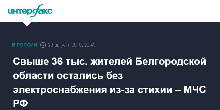 Свыше 36 тыс. жителей Белгородской области остались без электроснабжения из-за стихии – МЧС РФ