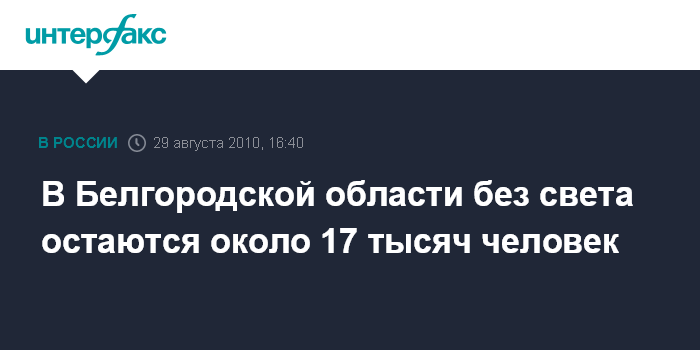 Москва. 29 августа. INTERFAX.RU - Более 17 тыс. человек остаются без электроснабжения в Белгородской области после ливневого дождя и шквалистого ветра, заявляют в МЧС России. "По данным на 10:30 29 августа, восстановлена работа 51 линии электропередачи по 10 кВ, неисправными остаются 38 линий, обесточены на данный момент 234 трансформаторных подстанций. На восстановление электроснабжения направлено 76 аварийно-восстановительных бригад", - сообщили "Интерфаксу" в пресс-службе Центрального регионального центра (ЦРЦ) МЧС России. В ЦРЦ МЧС отметили, что пока без электроснабжения остаются 17 тыс. 385 человек.