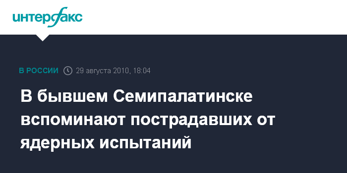 Семей. 29 августа. INTERFAX.RU - В Семее (город в Восточно-Казахстанской области, до 2007 г. - Семипалатинск) впервые отметили День действий против ядерных испытаний многотысячным митингом у мемориала пострадавшим от ядерных испытаний на Семипалатинском ядерном полигоне "Сильнее смерти".
