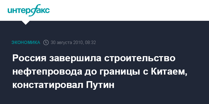 Россия завершила строительство нефтепровода до границы с Китаем, констатировал Путин