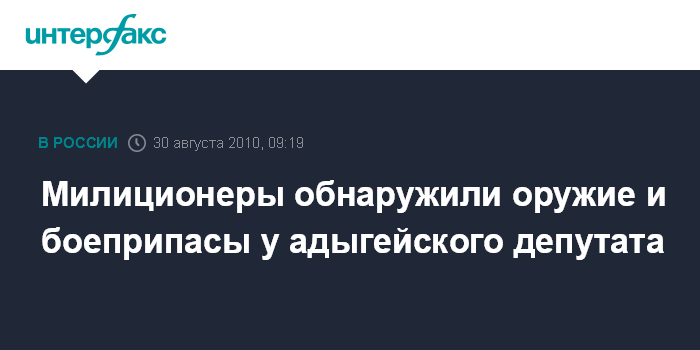 Москва. 30 августа. INTERFAX.RU - В Адыгее в квартире депутата республиканского Государственного Совета - Хасэ обнаружен склад оружия, хозяин объявлен в розыск, сообщил "Интерфаксу" в понедельник источник в правоохранительных органах.
