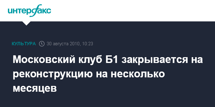 "1 сентября 2010 года Клуб Б1 Maximum закрывается на реконструкцию на 2-3 месяца для устранения замечаний Госпожнадзора. Информация о переносе концертов на другие концертные площадки находится на официальном сайте Клуба", - говорится в сообщении.