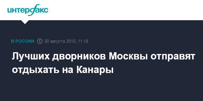 Москва. 30 августа. INTERFAX.RU - Дворников, ставших в этом году победителями конкурса "Московский дворик" наградят поездками на отдых на испанские Канарские острова, сообщили "Интерфаксу" в горадминистрации в понедельник.