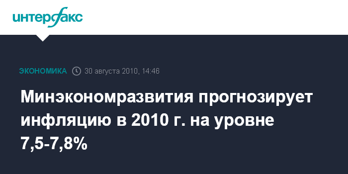 Минэкономразвития прогнозирует инфляцию в 2010 г. на уровне 7,5-7,8%