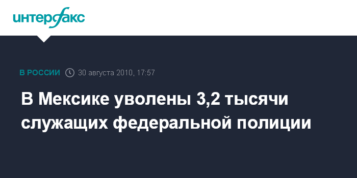 Вашингтон. 30 августа. INTERFAX.RU - Около 3,2 тысячи федеральных полицейских Мексики были уволены за провалы в работе по борьбе с коррупцией или причастность к совершению коррупционных преступлений, сообщает в понедельник CNN.