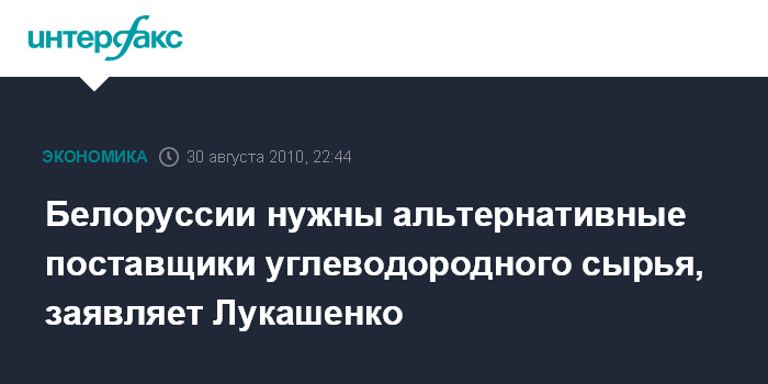 Минск. 30 августа. ИНТЕРФАКС-ЗАПАД - Президент Белоруссии Александр Лукашенко заявил, что обеспеченность углеводородным сырьем это вопрос суверенитета и независимости страны.