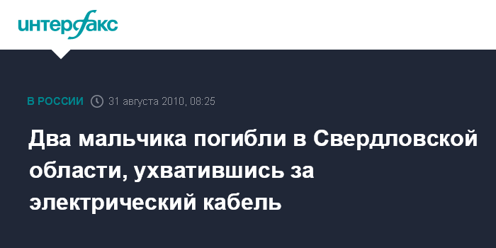Два мальчика погибли в Свердловской области, ухватившись за электрический кабель