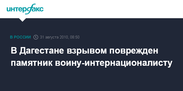 Москва. 31 августа. INTERFAX.RU - В населенном пункте Чонтаул Кизилюртовского района Дагестана во дворе средней школы N 1 около памятника воину-интернационалисту Гимбатову в понедельник произошел взрыв неустановленного устройства.