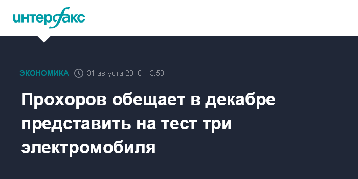 Москва.31 августа. INTERFAX.RU - Три типовых электромобиля будут представлены на тест в декабре этого года, сообщил глава группы "Онэксим" Михаил Прохоров.