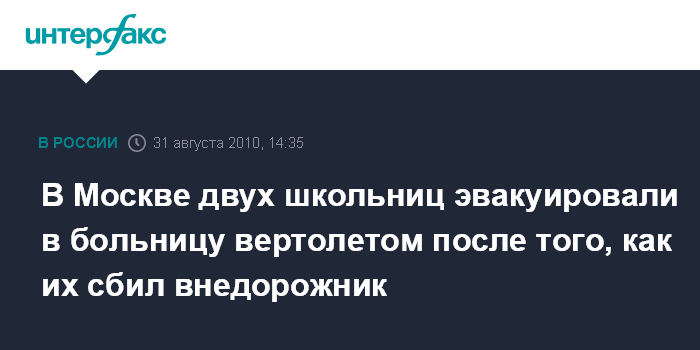 В Москве двух школьниц эвакуировали в больницу вертолетом после того, как их сбил внедорожник