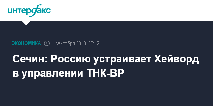 Сечин: Россию устраивает Хейворд в управлении ТНК-ВР