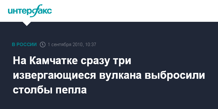 Петропавловск-Камчатский. 1 сентября. INTERFAX.RU - Вулканы Шивелуч, Ключевской и Карымский, извергающиеся на Камчатке, выбросили столпы пепла на высоту в несколько километров над уровнем моря.