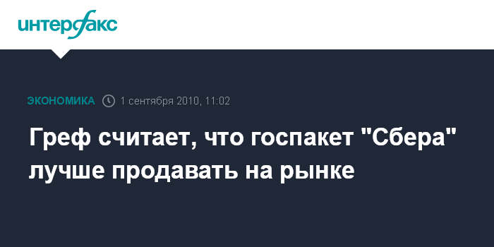 Москва. 1 сентября. INTERFAX.RU - Глава Сбербанка РФ Герман Греф считает, что продавать пакет акций Сбербанка, принадлежащий государству, лучше на рынке, чем предлагать его стратегическим инвесторам.