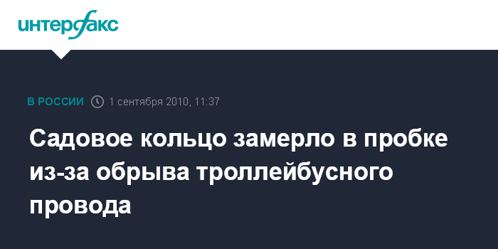 Москва. 1 сентября. INTERFAX.RU - Обрыв троллейбусного контактного провода стал причиной серьезной пробки на Садовом кольце.