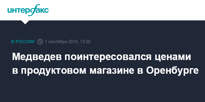 Оренбург. 1 сентября. INTERFAX.RU - Президент РФ Дмитрий Медведев, который в среду находится с рабочей поездкой в Оренбургской области, сделал незапланированную остановку для того, чтобы зайти в один из продуктовых магазинов города.