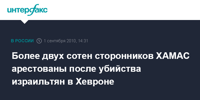 Более двух сотен сторонников ХАМАС арестованы после убийства израильтян в Хевроне