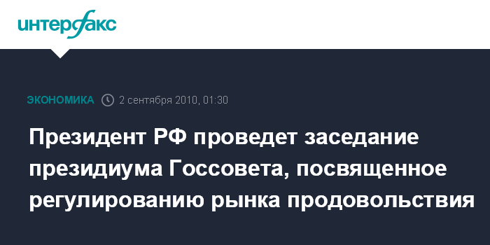 Саратов. 2 сентября. ИНТЕРФАКС - Президент РФ Дмитрий Медведев проведет в четверг в Саратове выездное заседание президиума Госсовета, которое будет посвящено регулированию внутреннего рынка продовольствия.