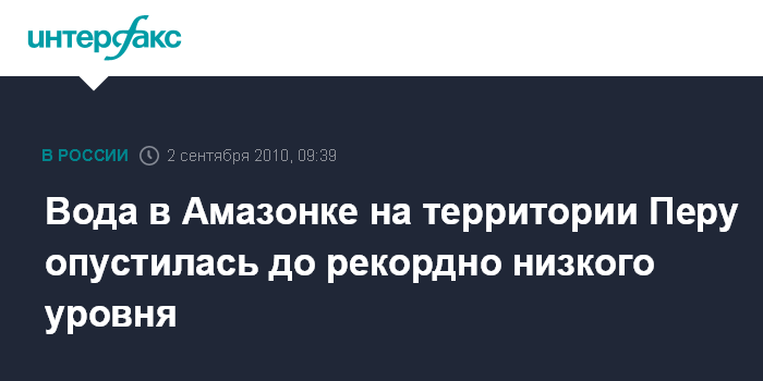 Лима. 2 сентября. INTERFAX.RU - Жаркая погода и засуха привели к самому сильному за примерно 40 лет понижению уровня воды в реке Амазонке на территории Перу, пишет местная газета El Comercio.