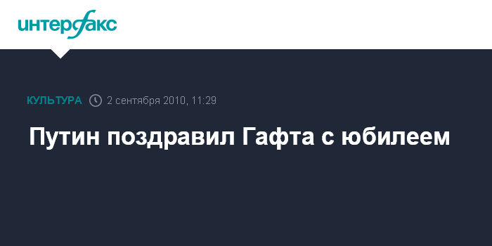 Москва. 2 сентября. INTERFAX.RU - Премьер-министр России Владимир Путин направил поздравительную телеграмму актеру театра и кино, народному артисту РСФСР Валентину Гафту по случаю его 75-летия, сообщает в четверг пресс-служба правительства.