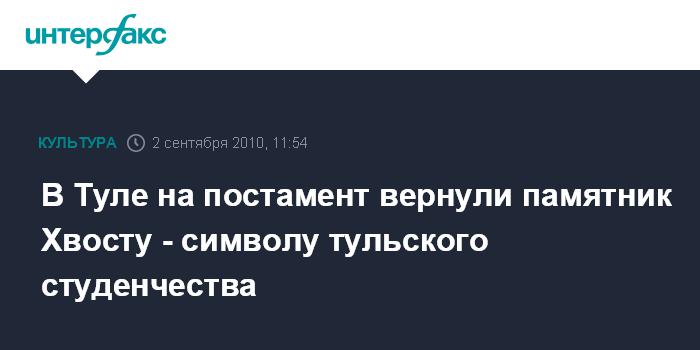Тула. 2 сентября. INTERFAX.RU - В Туле возле 2-го корпуса Тульского государственного университета (ТулГУ) после реставрации вновь открыли памятник Хвосту, сообщили "Интерфаксу" в четверг в пресс-службе вуза.