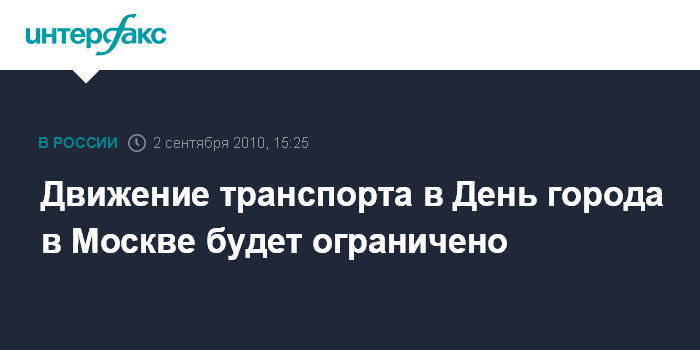 Москва. 2 сентября. INTERFAX.RU - Движение транспорта в Москве в ближайшие выходные будет ограничено в связи с празднованием Дня города, сообщили "Интерфаксу" в Управлении ГИБДД столицы в четверг.