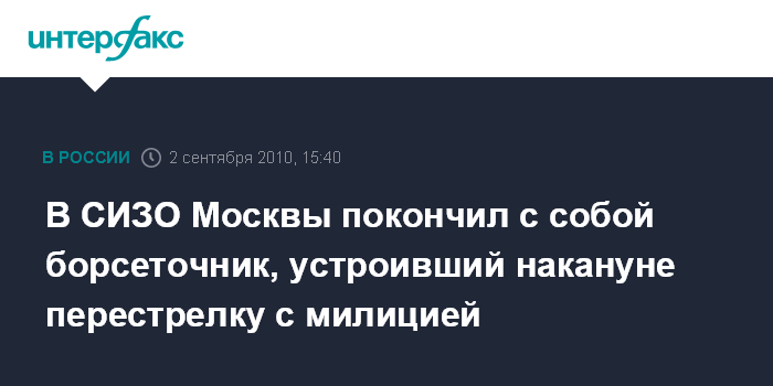 В СИЗО Москвы покончил с собой борсеточник, устроивший накануне перестрелку с милицией