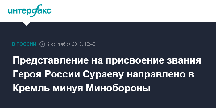 Представление на присвоение звания Героя России Сураеву направлено в Кремль минуя Минобороны