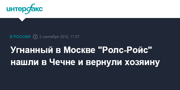 "Ролс-Ройс Фантом" стоимостью почти $1 млн был похищен 14 июня 2007 г., а спустя четыре дня объявлен в розыск. Угнанную машину госавтоинспекторы остановили в столице Чечни для обычной проверки документов, однако при дальнейшей проверке выяснилось, что машина уже не первый год значится в розыске.