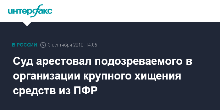 Суд арестовал подозреваемого в организации крупного хищения средств из ПФР