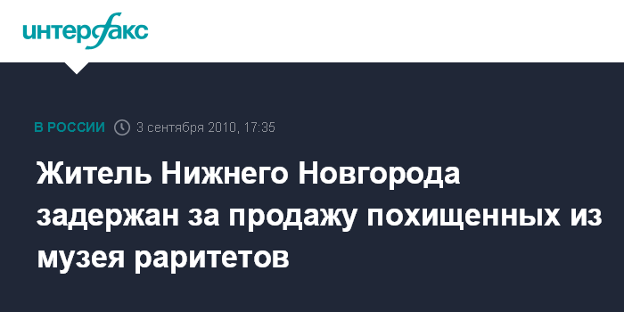 Житель Нижнего Новгорода задержан за продажу похищенных из музея раритетов