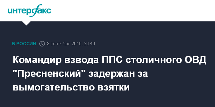 Командир взвода ППС столичного ОВД "Пресненский" задержан за вымогательство взятки