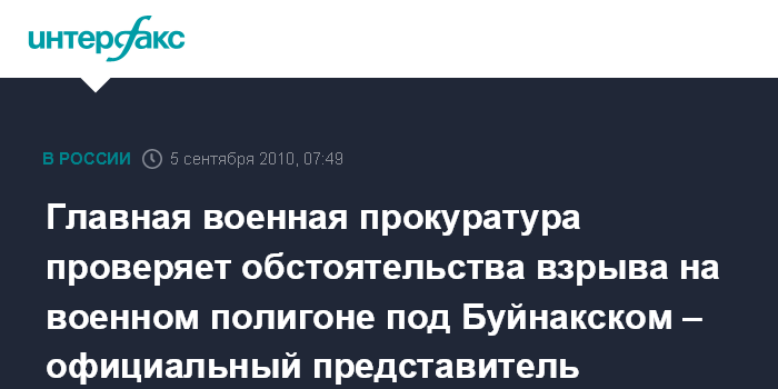 Москва. 5 сентября. ИНТЕРФАКС - Военная прокуратура Северо-Кавказского военного округа совместно с Главной военной прокуратурой проводит проверку по обстоятельствам взрыва на военном полигоне под Буйнакском, заявил "Интерфаксу" в воскресенье утром официальный представитель Главной военной прокуратуры.