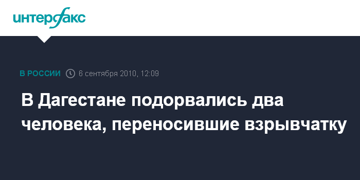 В Дагестане подорвались два человека, переносившие взрывчатку