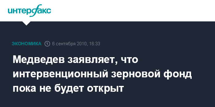 Медведев заявляет, что интервенционный зерновой фонд пока не будет открыт