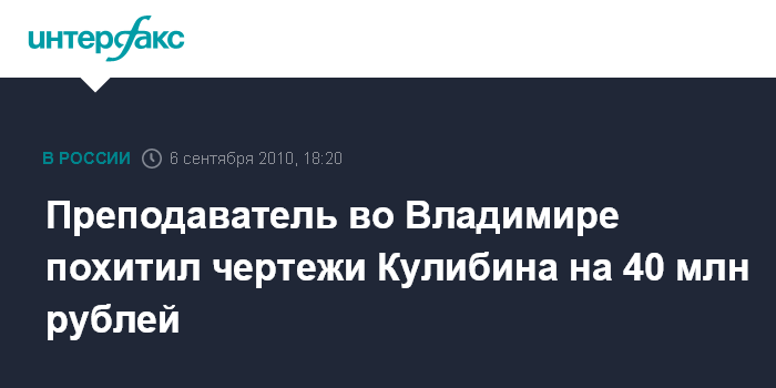 Преподаватель во Владимире похитил чертежи Кулибина на 40 млн рублей