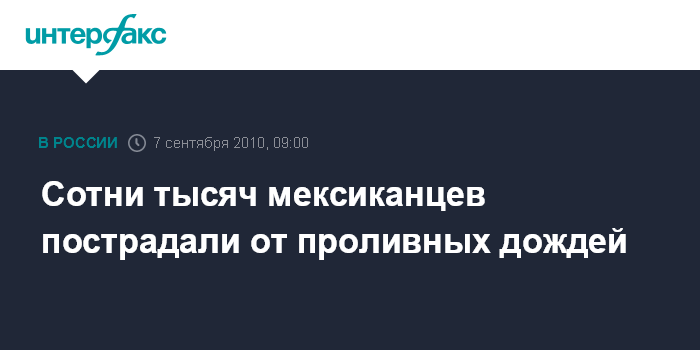 Мехико. 7 сентября. INTERFAX.RU - Проливные дожди в Мексике привели в последние дни к гибели минимум трех человек, а 400 тысяч жителей понесли ущерб, сообщили местные власти.