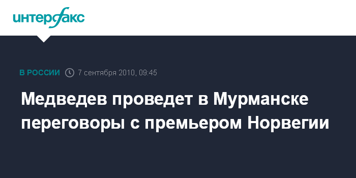 В рамках визита пройдут переговоры президента России Дмитрия Медведева с Столтенбергом. В присутствии российского и норвежского руководителей будут подписаны двусторонние документы.