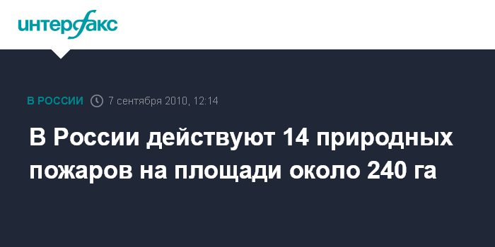 "В течение суток возникло 96 очагов, потушено 95 очагов, и в настоящий момент продолжают действовать 14 на общей площади 239,9 га, в том числе пять торфяных пожаров", - сообщили "Интерфаксу" в управлении информации МЧС России.